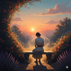 :  [Verse 1]  The sun leans low, the sky turns mild  A breeze like fingers, soft and wild  You sit with