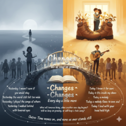 Closeness stays, memory fades, searching eyes, no name remains. A bond that pulls, a bond that breaks, love in shadows, love still
