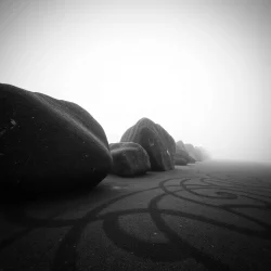 The wind moves through these silent streets Your laughter’s caught inside of me Your shadow dances where time retreats While color fades